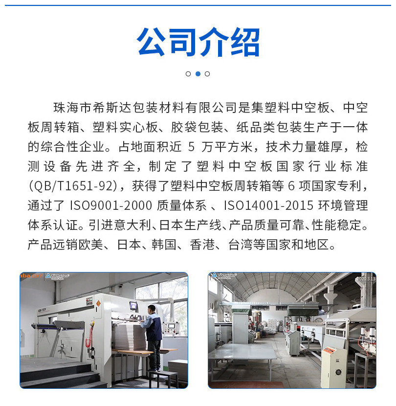 歡迎來到珠海市希斯達包裝材料有限公司!主要生產(chǎn):中空板,周轉(zhuǎn)箱,托盤等產(chǎn)品!